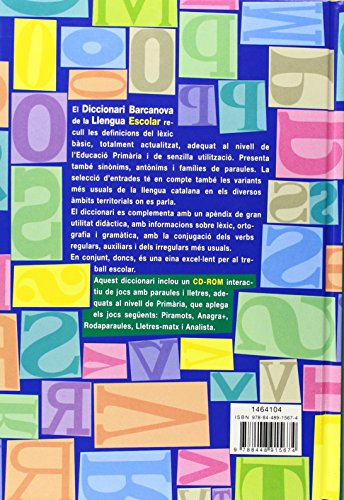 El Diccionari Barcanova de la Llengua Escolar re-cull les definicions del lèxic bàsic, totalment actualitzat, adequat al nivell de l'Educació Primària i de senzilla utilització. Presenta també sin.nims, ant.nims i famílies de paraules. La selecció d'entrades té en compte també les variants més usuals de la llengua catalana en els diversos àmbits territorials on es parla. El diccionari es complementa amb un apèndix de gran utilitat didàctica, amb informacions sobre lèxic, ortografia i gramàtica, amb la conjugació dels verbs regulars, auxiliars i dels irregulars més usuals. En conjunt, doncs, és una eina excel·lent per al treball escolar. Aquest diccionari inclou un CD-ROM interactiu de jocs amb paraules i lletres, adequats al nivell de Primària, que aplega els jocs següents: Piramots, Anagra+, Rodaparaules, Lletres-matx i Analista.Publié le: 2004-04-29Langue d'origine: CatalanNombre d'articles: 1Dimensions: 8.74" h x 1.81" l x 6.30" L, Reliure: Relié920 pagesPrésentation de l'éditeurEl Diccionari Barcanova de la Llengua Escolar re-cull les definicions del lèxic bàsic, totalment actualitzat, adequat al nivell de l’Educació Primària i de senzilla utilització. Presenta també sinònims, antònims i famílies de paraules. La selecció d’entrades té en compte també les variants més usuals de la llengua catalana en els diversos àmbits territorials on es parla. El diccionari es complementa amb un apèndix de gran utilitat didàctica, amb informacions sobre lèxic, ortografia i gramàtica, amb la conjugació dels verbs regulars, auxiliars i dels irregulars més usuals. En conjunt, doncs, és una eina excel·lent per al treball escolar. Aquest diccionari inclou un CD-ROM interactiu de jocs amb paraules i lletres, adequats al nivell de Primària, que aplega els jocs següents: Piramots, Anagra+, Rodaparaules, Lletres-matx i Analista.